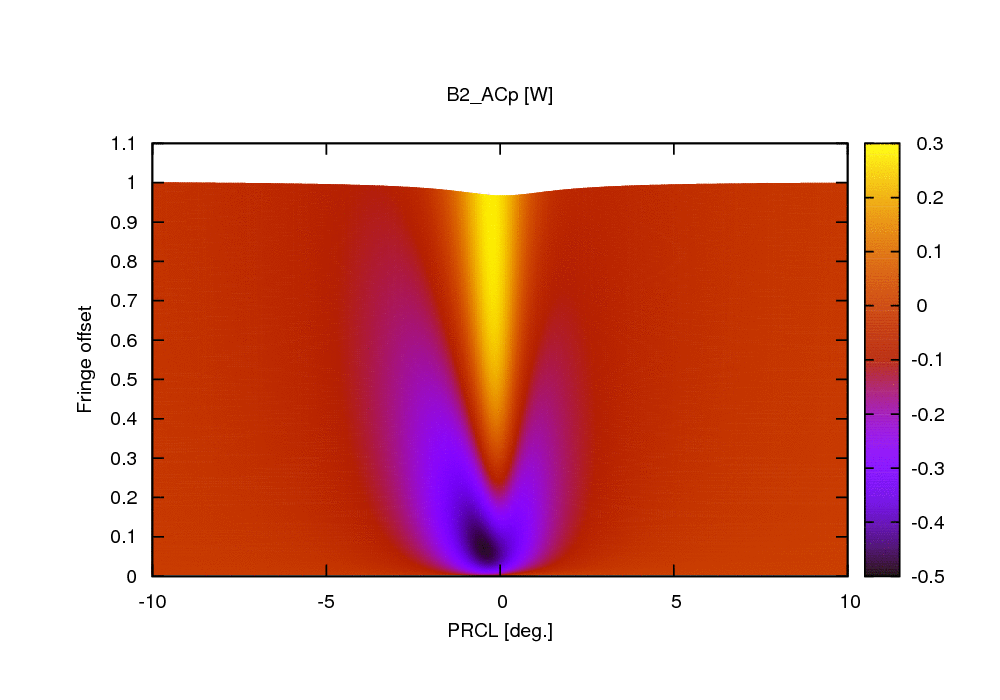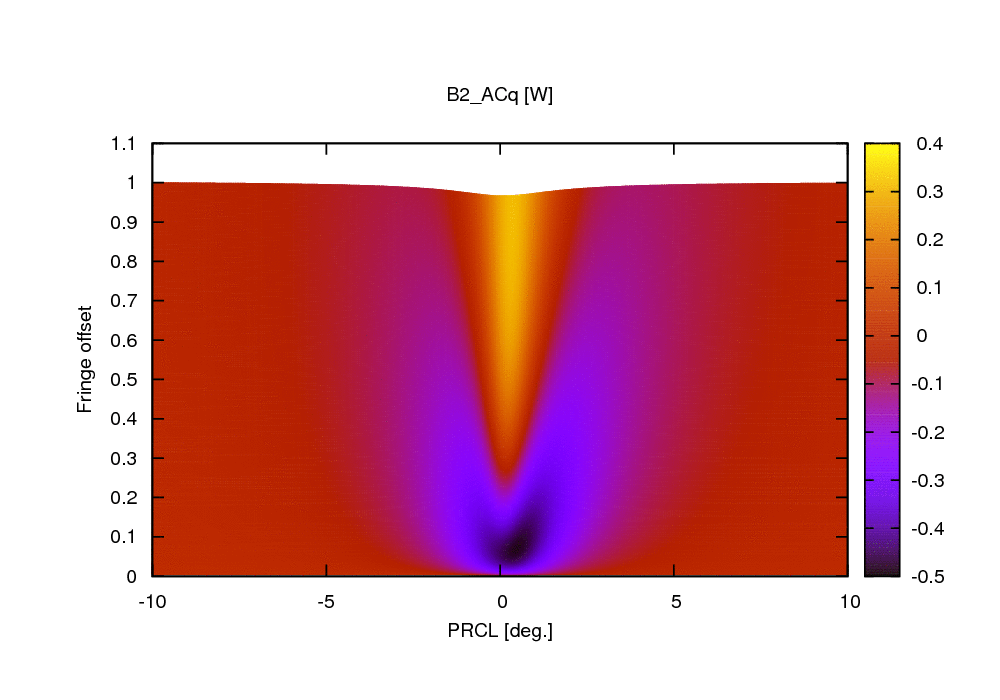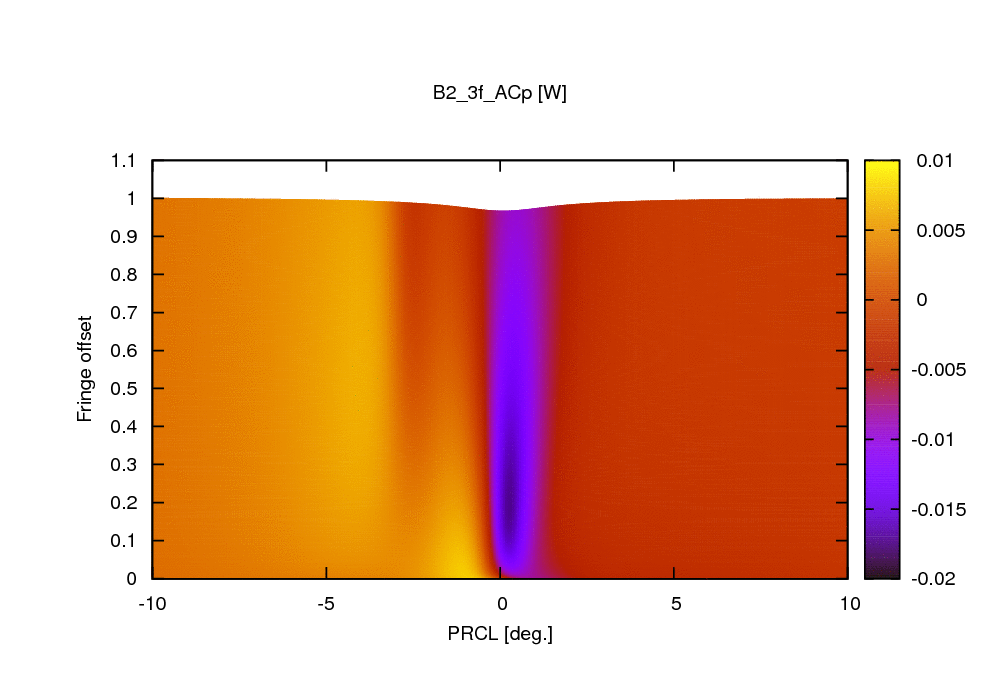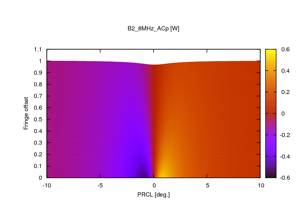 The following two plots show the behavior of B2_ACp. Clearly it can not give a working error signal to control PRCL for all values of fringe offsets.