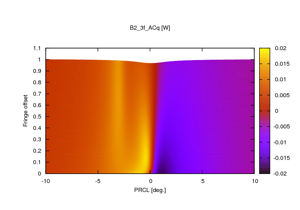 The following two plots show instead B2_3f_ACp. A good error signal with zero close to the operating point (PRCL phi = 0) is always present.
