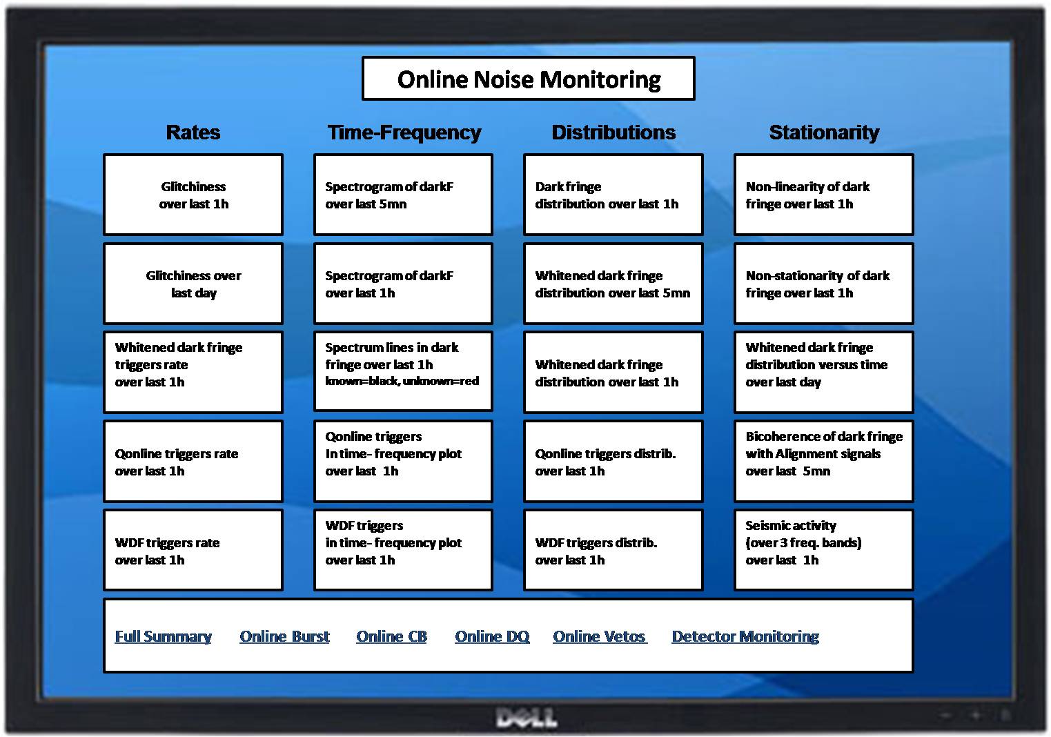 The idea was to collect all the monitors for noise in a common web page. Some of these tools are already linked to on-line chain, some others read files, but could be put in the on-line chain.